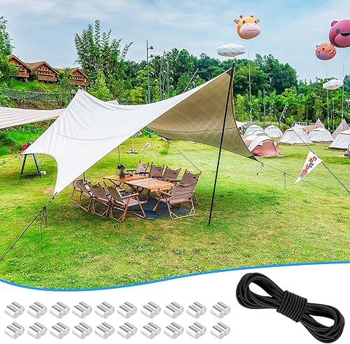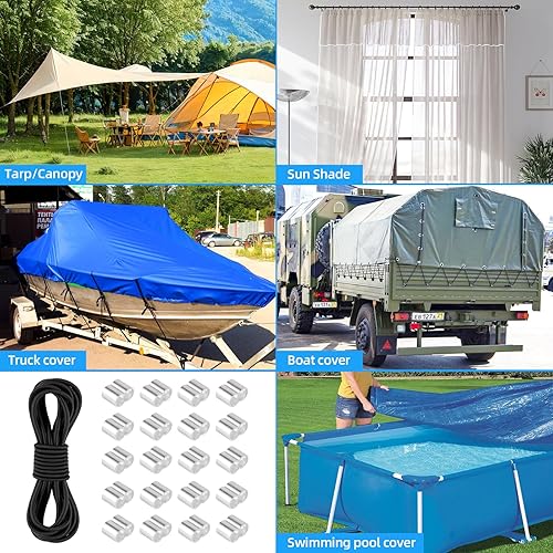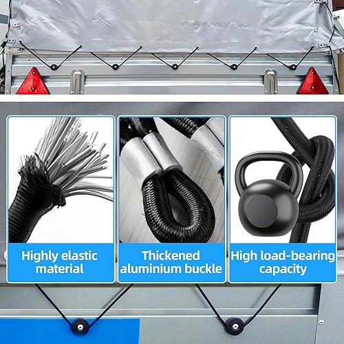 Espansore Corda Elastica 8mm 10M, Corda di Sicurezza Con 20 Morsetti a Strozzo, per Telone del Rimorchio, Campeggio, Auto