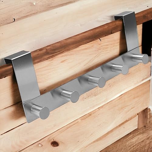 Appendiabiti da porta da appendere, in acciaio inox, 30 cm, 5 ganci per porta, adatto come appendiabiti per porta, per porta