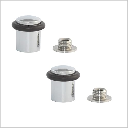 EVI Herrajes | Pack con 2 Fermaporte| Ø20 x 29 mm |Ottone Opaco con Gomma Nera di Silicone Naturale | Compresi utensile, vite + tassello di fissaggio| I-108