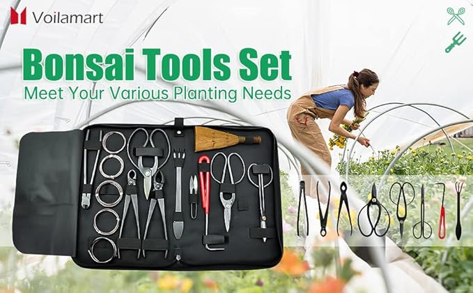 Set di attrezzi per bonsai, kit da 16 pezzi con 4 forbici, 3 taglierine, 1 gancio, 1 rastrello, 1 scopa, 5 fili, regali di giardinaggio per donne e uomini
