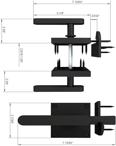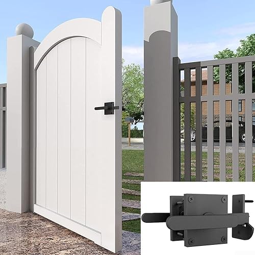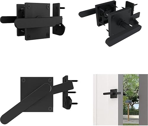 Chiavistello in legno per porta da giardino, in alluminio, nero, doppio lato con due maniglie, resistente meccanismo di bloccaggio (nero)