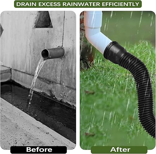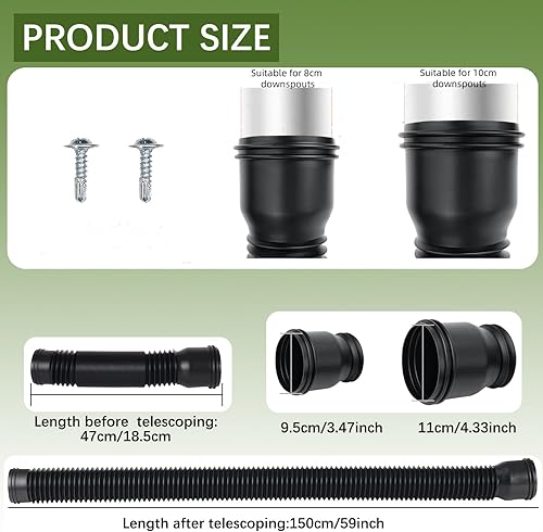 1 Pezzo Prolunga Flessibile per Grondaia, Prolunghe Rotonde per Tubo di Scarico da 80/100 mm, set di Connettore per Grondaia Estensione da 47 a 150 cm, Nero