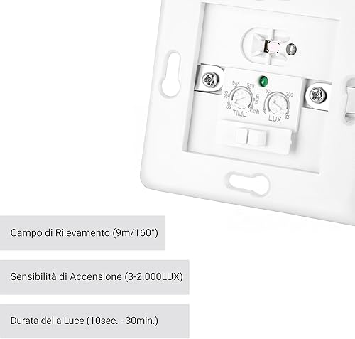 2x Rilevatore di Movimento per Luci Interno, Montaggio a Parete da Incasso, LED Adatto, Programmabile, Sensore Infrarossi, 9m/160°