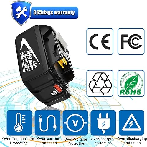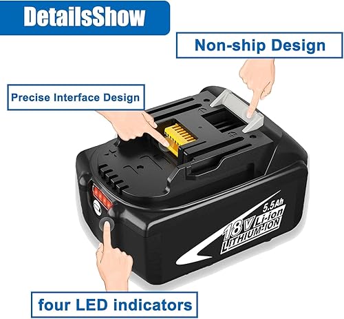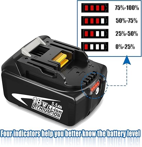 2X Sostituzione per Makita 18V Batteria 5.5Ah BL1850B BL1860B BL1850 BL1860 BL1840B BL1830B BL1820B BL1840 BL1830 BL1820 BL1815 BL1835 BL1845 con indicatore LED