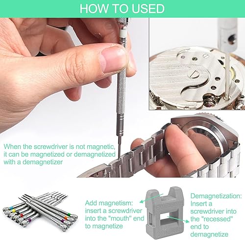 Set di Cacciaviti Precisione Orologioaio 0,6 – 2,0 mm, Cacciavite per Occhiali Orologiaio, Kit Riparazione Orologi, Giraviti Strumenti con Smagnetizzatore, per Riparare Orologi ed Elettronica