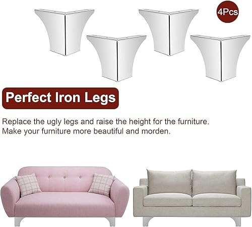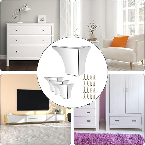 4 Piedini per Mobili Da 10cm, Piedini In Metallo Moderni, Piedini Triangolari Ricambio, Gambe per Mobili Triangolari In Argento, Ricambio Fai Da Te per Armadietto, Divano, Sedia, Tavolino Con Viti