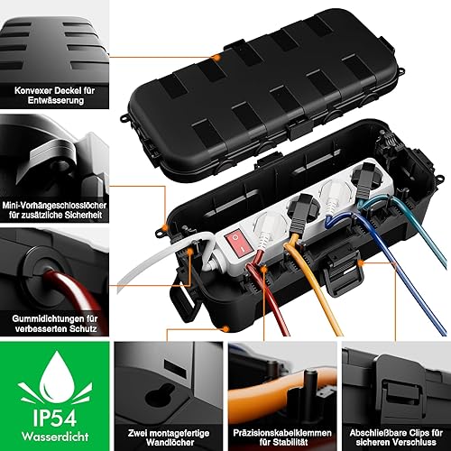 RESTMO Scatola per cavi media impermeabile per esterni, IP54, impermeabile, resistente alle intemperie, ideale per la protezione di prolunghe, prese elettriche e connettori angolari (29 cm x 13,2 cm x