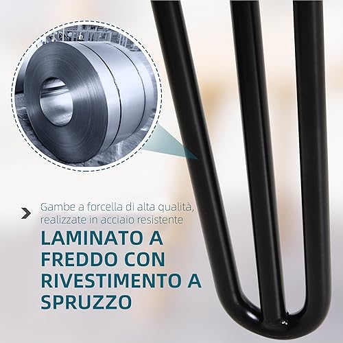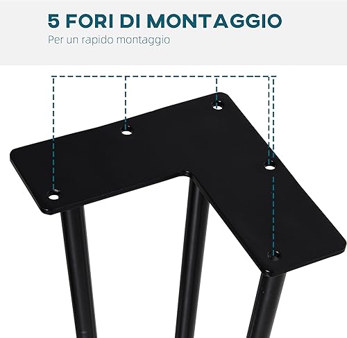 HOMCOM Gambe per Tavoli Set 4 Pezzi in Acciaio con Superficie Preforata e 20 Viti Incluse, 12x12x71 cm, Nero