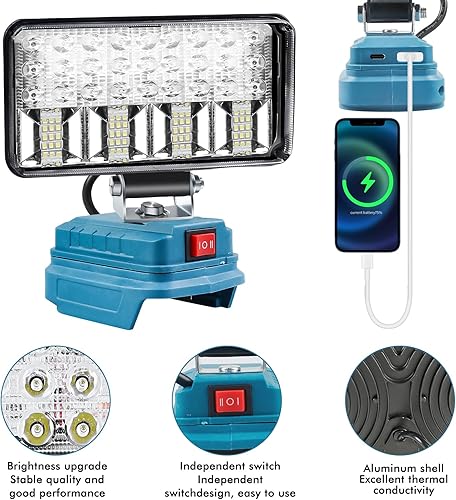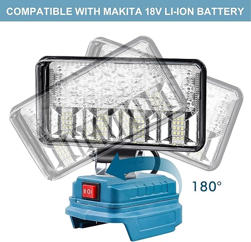 SPORWAY Lampada a batteria per Makita: 18 V, 90 W, luce di inondazione portatile, 2 modalità, lampada da lavoro a LED, batteria con 2 ricarica USB, 7500 lm, per cantieri, emergenze, cantieri