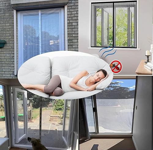 Zanzariera Magnetica Porta Finestra 116 x 120 cm Tenda Totalmente Magnetica Traspirante Aria Fresca Magneti Rete Anti Zanzare Anti Insetti Zanzariera per Finestre a Battenti, Grigio
