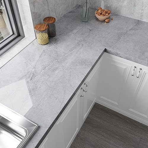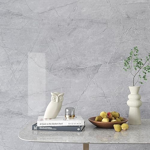 Carta da Parati Marmo Grigio Chiaro Moderna 40 cm x 900 cm Carta Adesiva Effetto Marmo Lucida Pellicola Autoadesiva per Cucina Carta da Parati Adesiva Muro Bagno Cameretta Lavabile Rimovibile