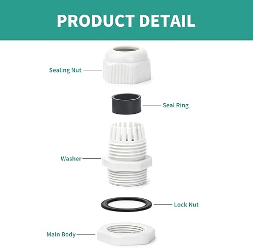 Set di Pressacavo Impermeabile Nylon, 15 Pezzi Connettori Pressacavi Impermeabili con Guarnizione, Pressacavi Regolabile con 5 Spine per Vari Collegamenti di Cavi
