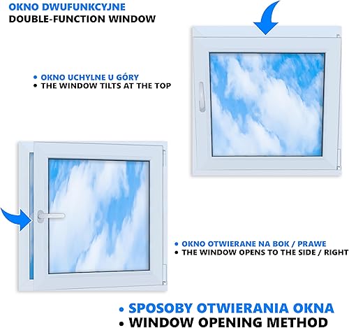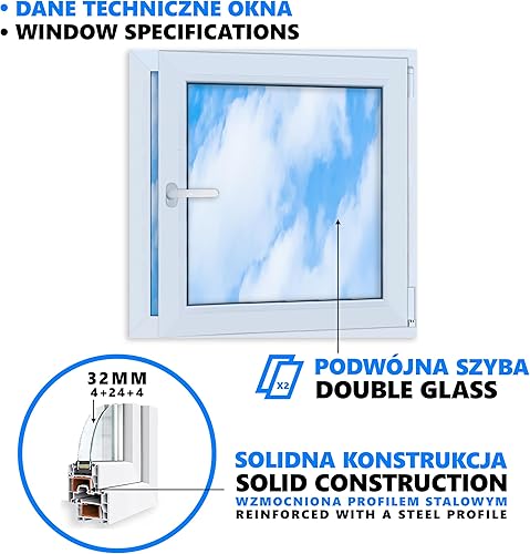 Finestra in PVC bianca 800x800 mm, DIN destra, ribaltabile e a sporgere, vetro doppio, a risparmio energetico – Finestra con certificazione CE per cantina e abitazione