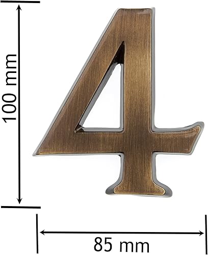 numero civico 4 in ottone 10 cm I numeri civici per casa e porta I numero civico 3D I targhette con numero civico in nobile ottone antico 3D design