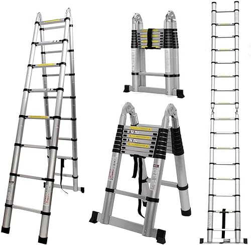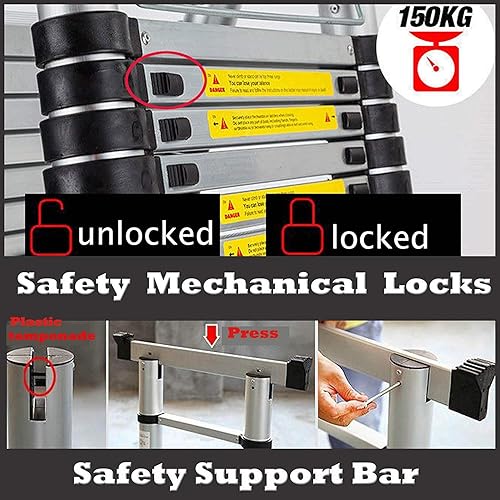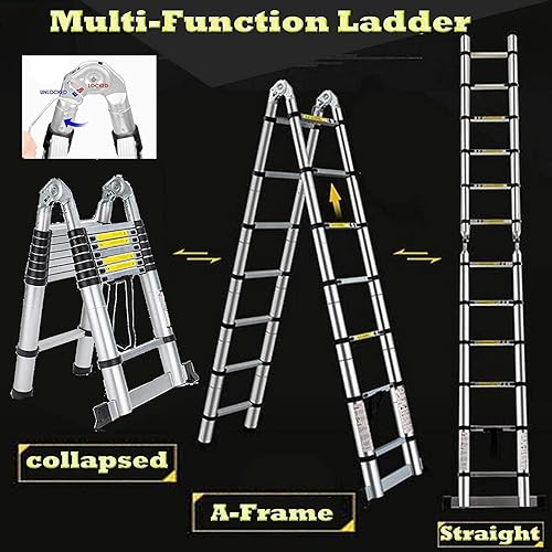 5M Scala Telescopica in Alluminio, Scala Retrattile pieghevole, Capacità 150kg, Nero E Argento