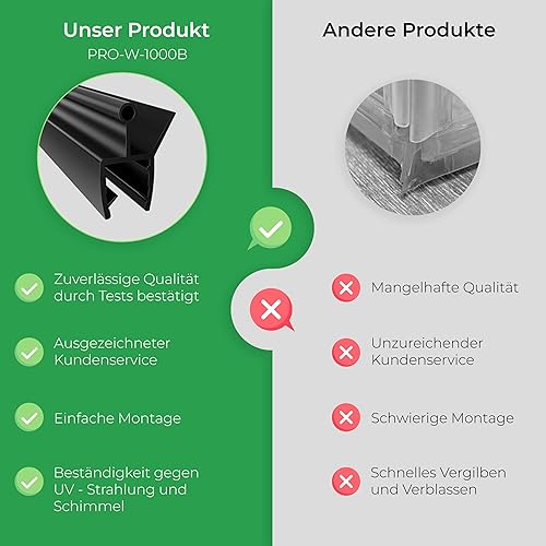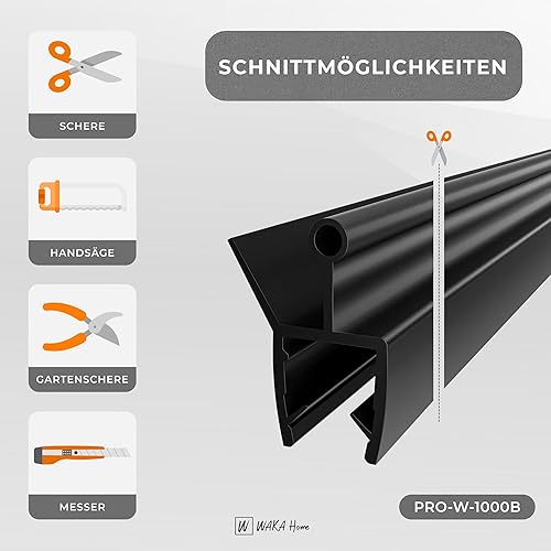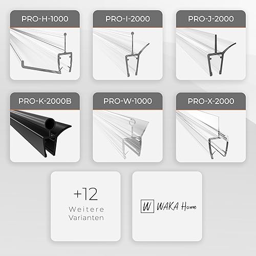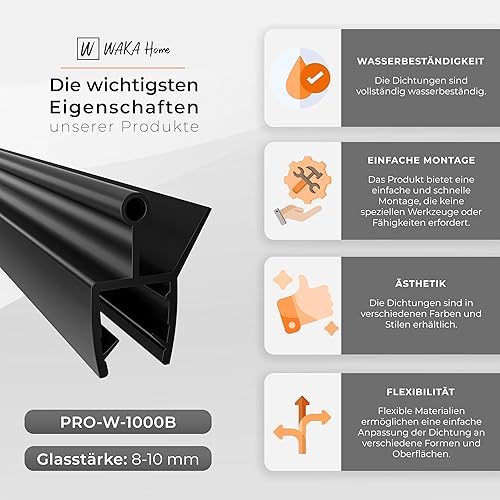 WAKA Premium porta doccia e labbro doccia, guarnizione per doccia ottica, colore nero, guarnizioni per doccia da 6 a 8 mm, vetro da 200 cm e guarnizione per porta della doccia, compatibile con una
