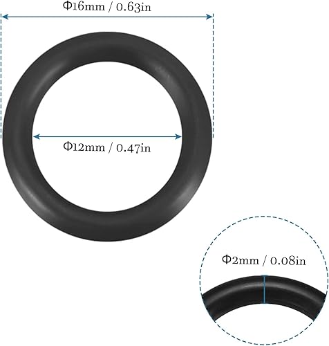 16mm x 12mm x 2mm Nitrile Gomma O-ring x 10pz Rotondo Guarnizione Rondella per Rubinetto Idraulica Riparazione Sigillatura Connessione [Nero]