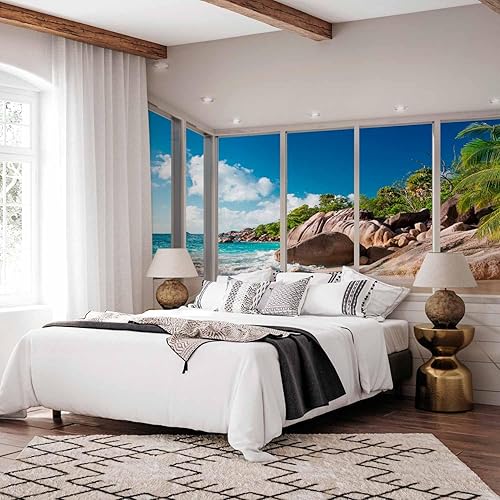 Fotomurale murando Carta da parati 350x256 cm TNT Murale alla moda Decorazione da Muro XXL Poster Gigante Design Carta per pareti Paesaggio Naturaleza Spiaggia Mare Palma c-C-0068-a-a