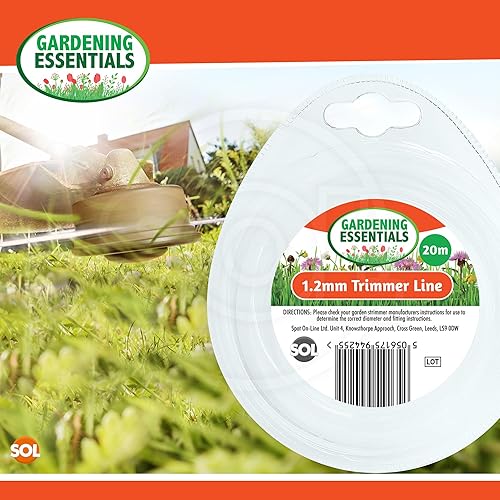 SOL Filo per decespugliatore, 20 m x 1,2 mm, in nylon resistente e flessibile per tagliare erba, erbacce e manutenzione del giardino, facile da installare, misura universale per decespugliatori