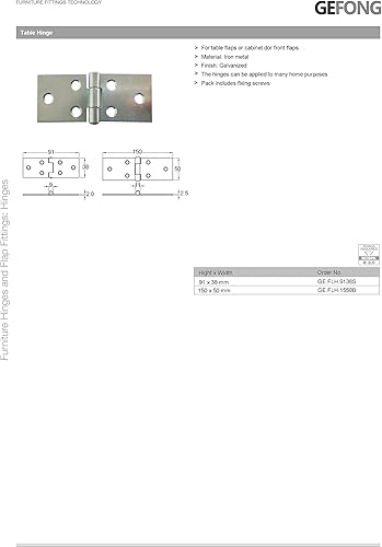 GEFONG Cerniera per Tavolo Pieghevole 270 Gradi per Alette da Tavola o Alette Anteriori Anta Armadio 91x38mm Confezione da 8 Pezzi