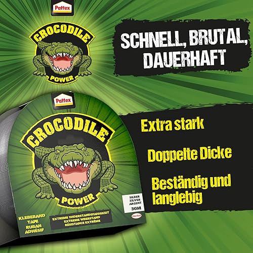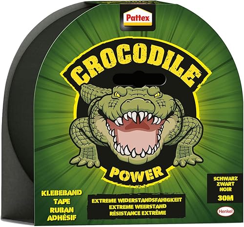 Pattex Nastro adesivo Crocodile Power, 30 m di resistenza, in tessuto nero a doppio spessore, estrema resistenza per le riparazioni più difficili, Duct Tape vari materiali