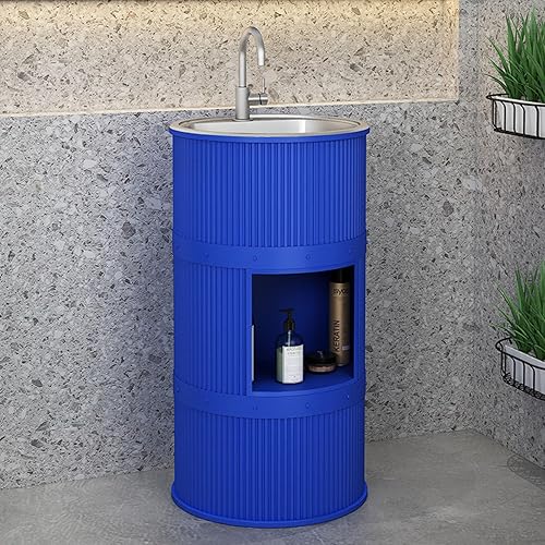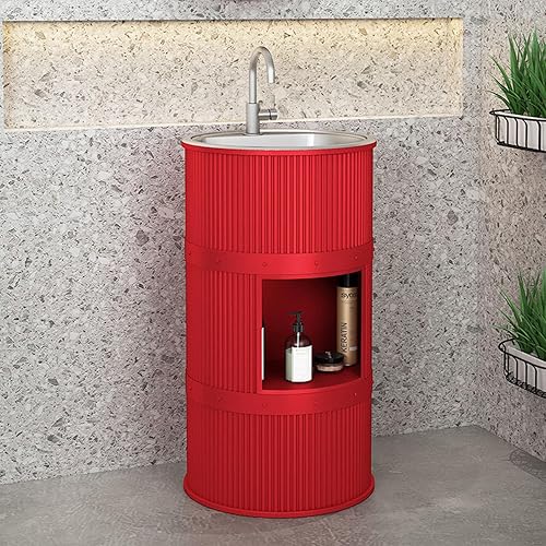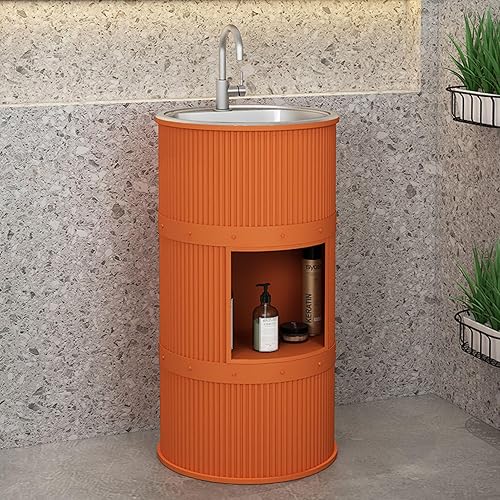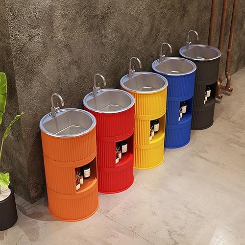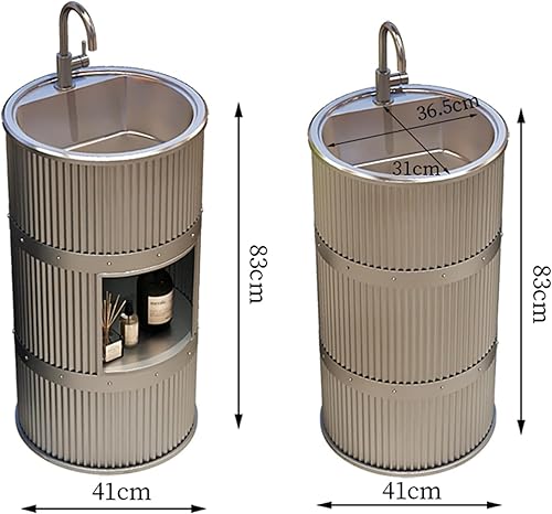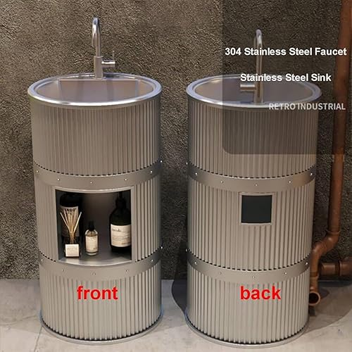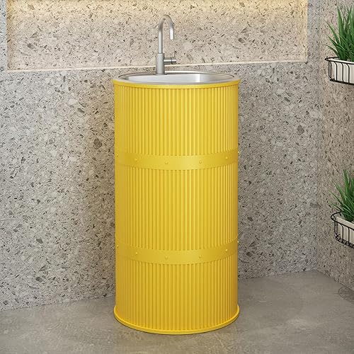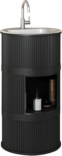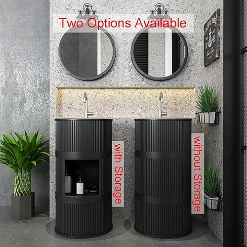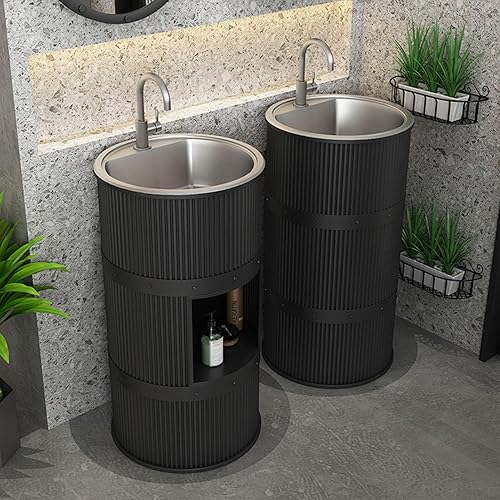 Lavandino a Colonna Moderno in Ferro Battuto, Mobile da Bagno con Lavabo in Acciaio Inox, Lavandino su Piedistallo Freestanding Set con Rubinetto e Scarico (con contenitore,nero)