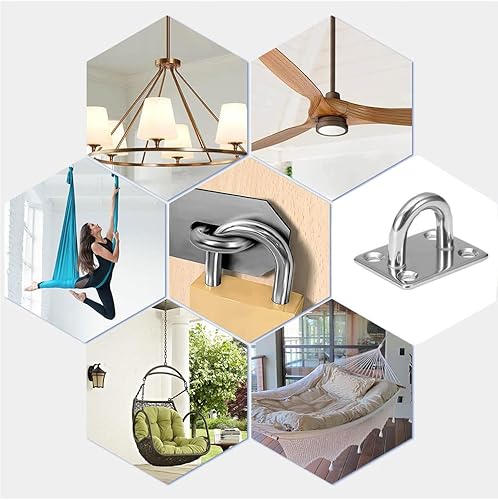 Piastra oculare in Acciaio Inossidabile M5 4 Pezzi,Gancio a Soffitto, Gancio a Parete,Apparecchio a soffitto,Piastra di Coperta in Acciaio Inossidabile,per Il sartiame della Barca Amaca Altalena