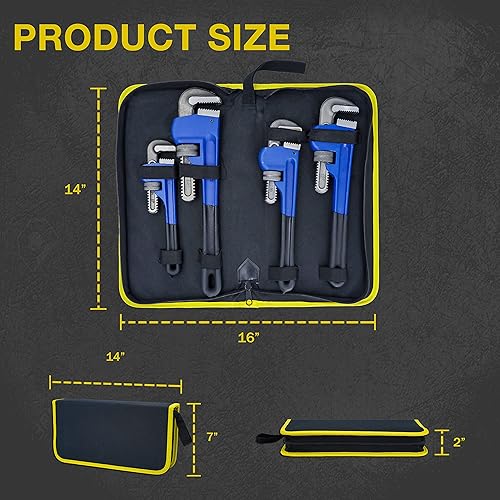 KOTTO Set di 4 chiavi per tubi, resistenti e trattate termicamente, regolabili da 8, 10, 12, 14 pollici, con custodia per riporre