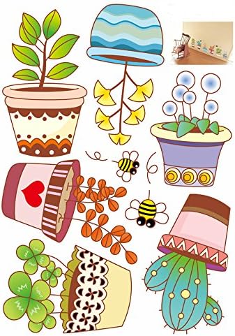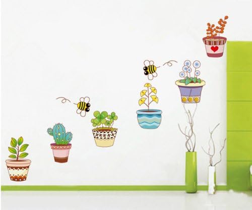 Piante in Vaso Colorate e Le Api Carino Adesivi Murali, Camera da Letto Soggiorno Adesivi da Parete Removibili/Stickers Murali/Decorazione Murale
