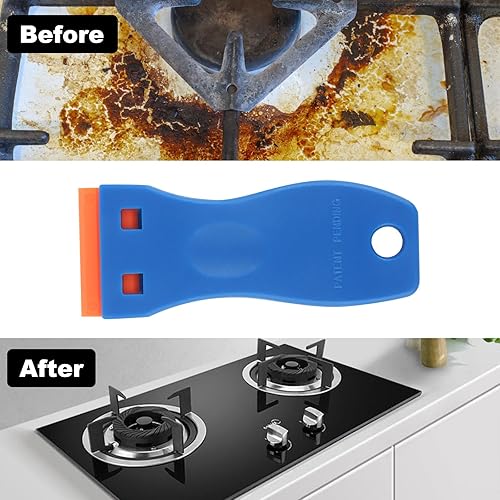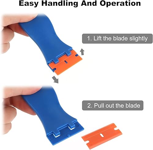 Raschietto, RISVOWO Razor Blade Spatola + 20 Lame in Plastica, Raschietto Forno, Raschietto Silicone per Vetro rimozione di residui adesivi adesivi per finestre di vetro e autoadesivi auto