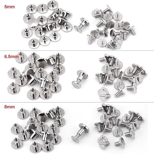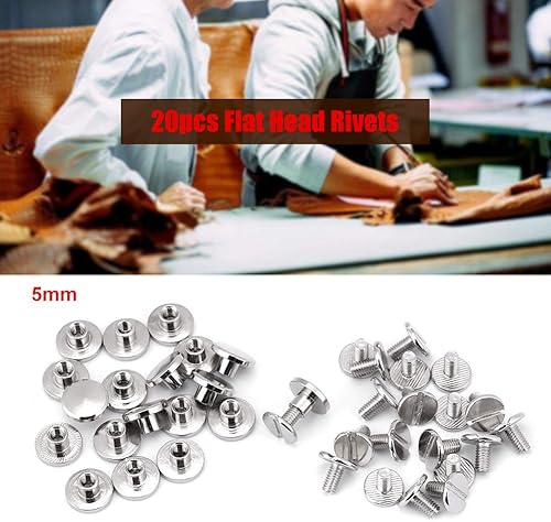 20Pcs Riparazione Vite Post Fastener Round Flat Head Chicago Viti Bottoni Metallo Chiodo Rivetto Borchie con Viti a taglio per Binding Artigianato in pelle fai da te(5mm)