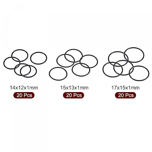 sourcing map O-ring in gomma nitrilica 14 mm 15 mm 17 mm OD 12 mm 13 mm 15 mm ID 1 mm Guarnizione di tenuta, nero 60 in 1 Set