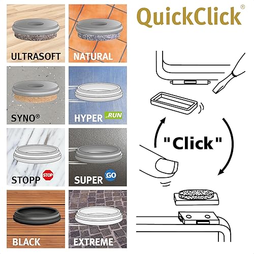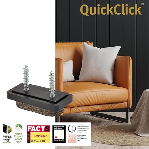 WAGNER QuickClick® Feltrini per sedie e mobili I Set da avvitare di 4x base + 8x vite + 4x inserto di scorrimento intercambiabile - feltro di lana ULTRASOFT 32 x 15 mm - Fatto in DE - 15782800