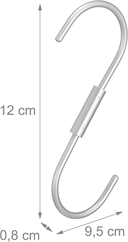 Relaxdays Ganci a S Girevoli, Set 12 Appendini Universali, Gancetti da Cucina & Bagno, Appendiabiti, Alluminio, Argento