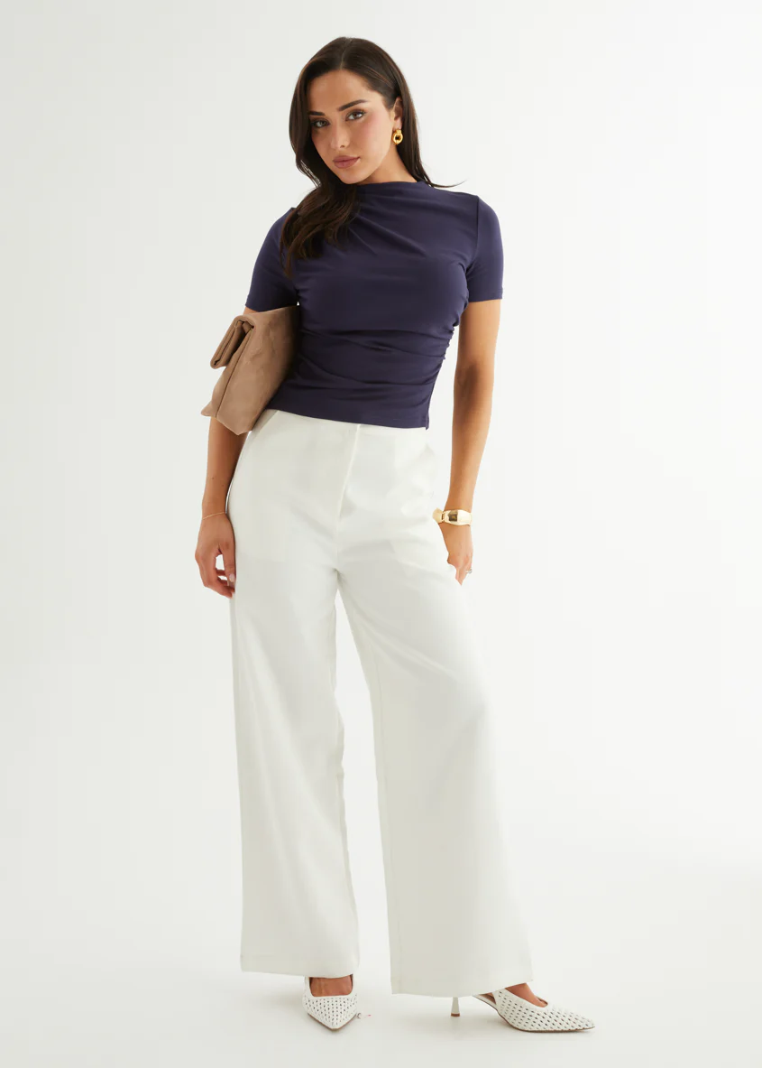Maliah Off Shoulder Midi Dress - Blue Lace