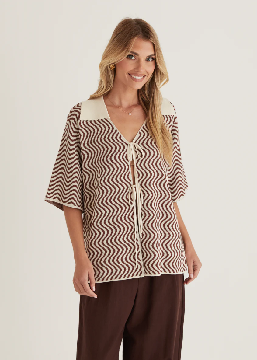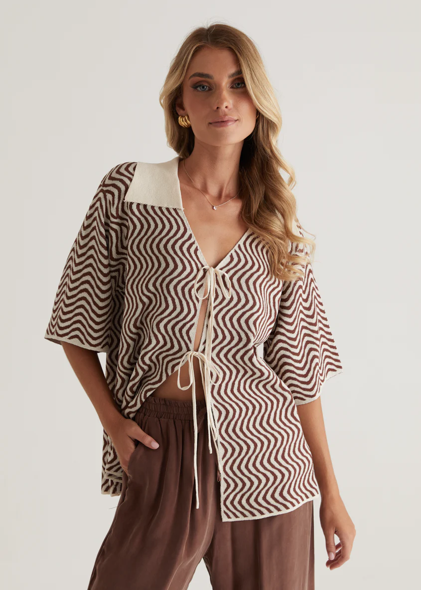 Charley Knit Top - Brown Swirl