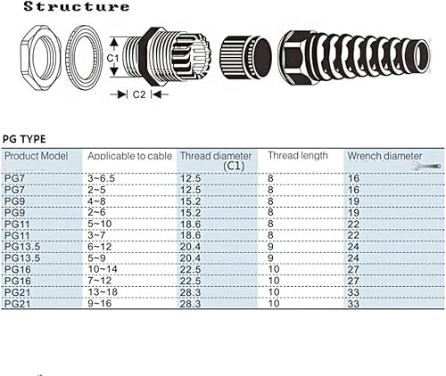 PG9 - Pressacavo, 4 pezzi, nero, IP68, impermeabile, flessibile, a spirale, protezione per il fissaggio e la protezione di cavi da 4-8 mm