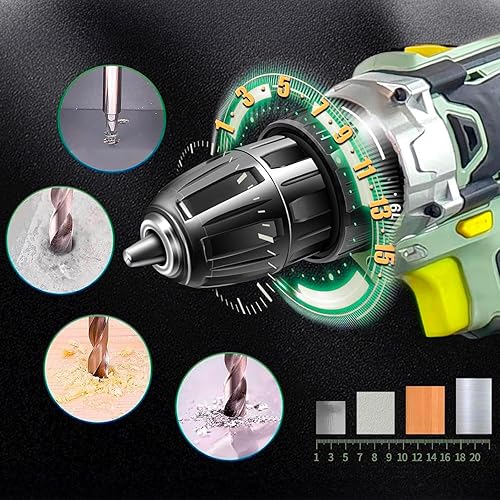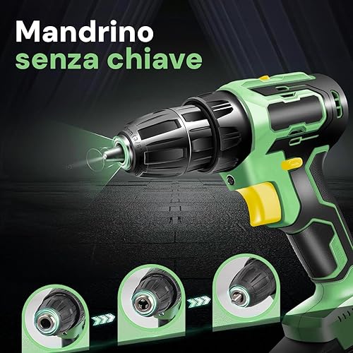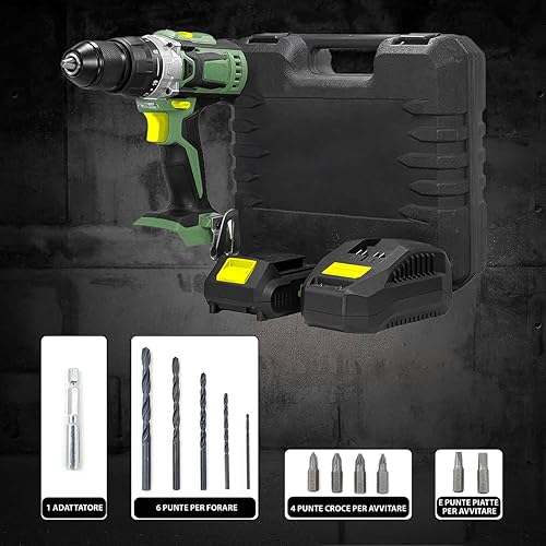 Set Trapano Avvitatore a Percussione 20V con 13 Accessori - 2 Velocità, Batteria 2Ah, Mirino LED - Ideale per Fai Da Te e Lavori Professionali