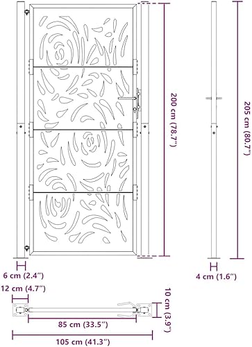 vidaXL Cancello da Giardino 105x155 cm Acciaio Corten Design a Fiamma, cancello di Recinzione, cancello Esterno, cancello del Metallo