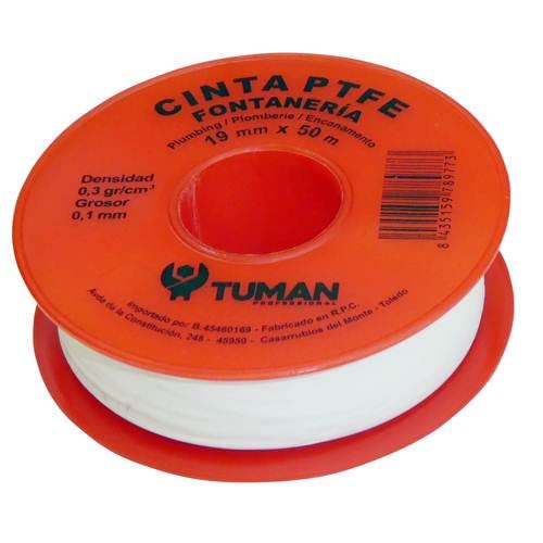 10 rotoli di nastro in teflon per impianti idraulici da 19 mmx0,1 mmx50 metri da 0,3 gr cm2 PTFE per sigillare filetti, tuberie.