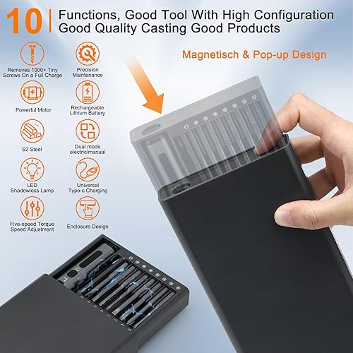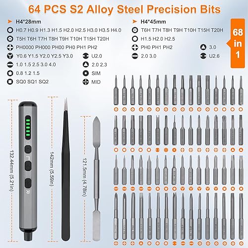 Yerbay Cacciavite Elettrico di precisione, set di Mini Cacciaviti Elettrici Magnetici 68 in 1,con 64 Punte Magnetiche S2,con luci LED a 5 Posizioni di Coppia,per iPhone, laptop, Occhiali e Orologi