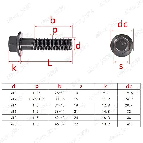 Bulloni a Testa flangiata Esagonale con Filettatura fine in Acciaio(M10 x 1.25 x 80mm)