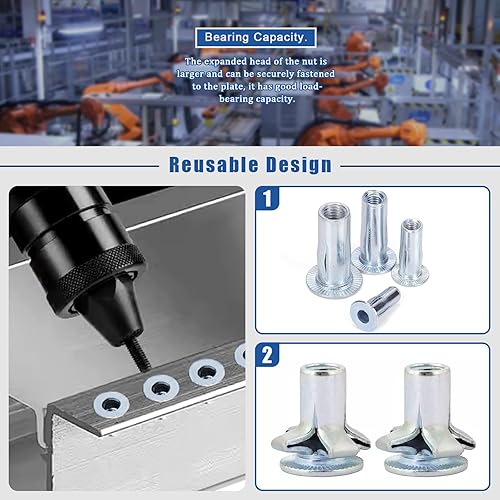 20 dadi per rivetti multi-presa, dadi M8 in zinco con gambo pre-bulbed a testa piatta filettati per decorazione di mobili automobilistici, prodotti elettrici e industriali