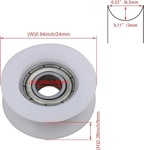 BQLZR 6 x 24 x 9 mm Bianco U Shape Groove Guida Puleggia Cuscinetto a sfere Cuscinetti a sfere per Mobili Puleggia Confezione da 4