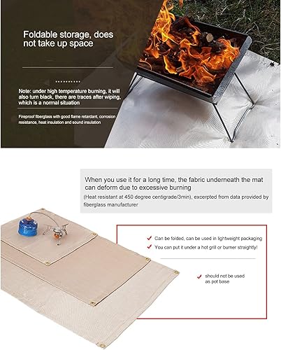 Tappetino ignifugo in fibra di vetro Tappetino ignifugo per braciere da campeggio Panno ignifugo Piegato Tappetino da picnic Tappeti resistenti alla temperatura per interni ed esterni(Piccolo)