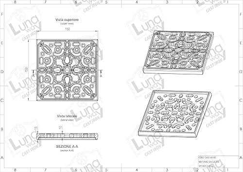 Lunaway - Griglia di ventilazione decorata in ghisa per camino e stufa | Spessore perimetrale 1,5 cm | Spessore centrale 1 cm | Dimensioni 25 x 25 cm