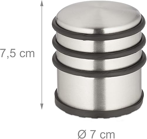 Relaxdays Fermaporta in Acciaio Inox, Set da 4, H x D: 7,5 x 7 cm, Blocca Porte Pesante e Antiscivolo, Argento Nero
