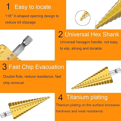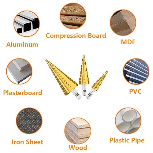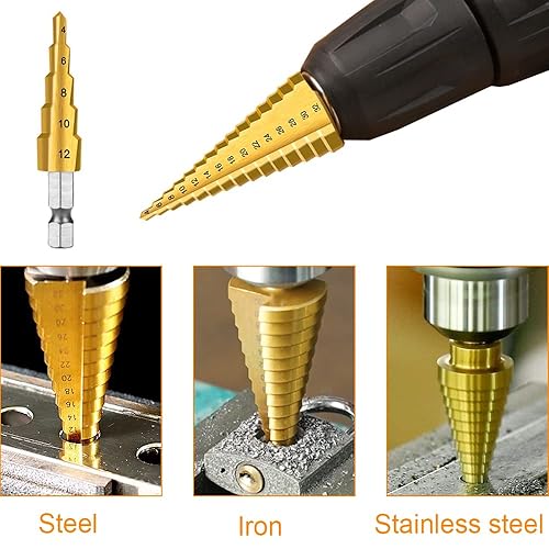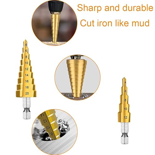 Set di 3 Punte Coniche per Trapano HSS Drill Bit 4-12/4-20/4-32mm Titanio Rivestito Step Drill Conico Trapano per PVC, Legno, Metallo, Alluminio, Rame