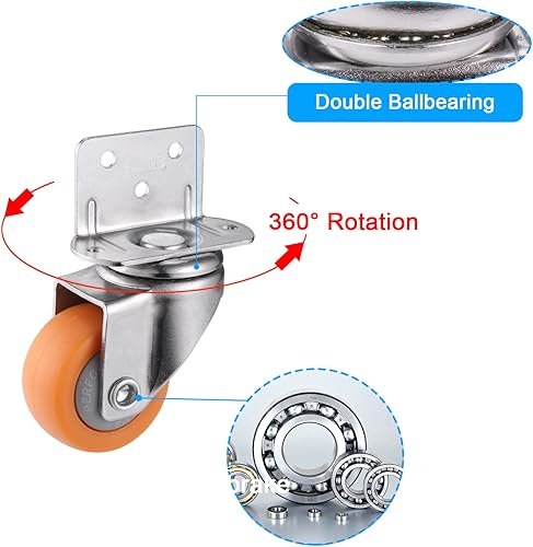 4 Pezzi Ruote per Mobili da 37mm, Rotelle per Mobili per Pallet Durevole con Viti, Ruote Carrello Indossabili a 360 Gradi per Mobili (Arancione)