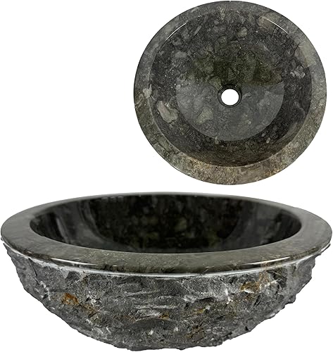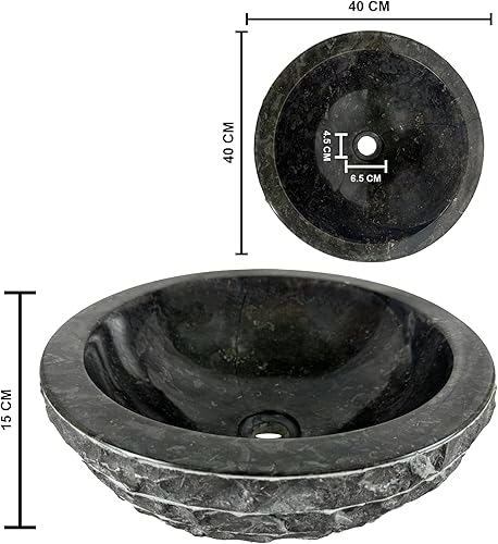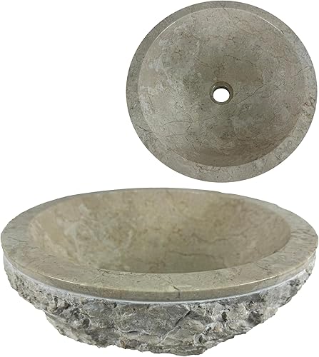 Lavandino Rotondo - Lavello - Lavabo Arredo Bagno Sanitari - 40x40x15 cm - in Marmo - Pietra naturale - Lucido - Solido e robusto (Crema)